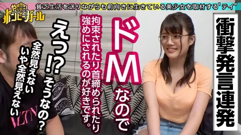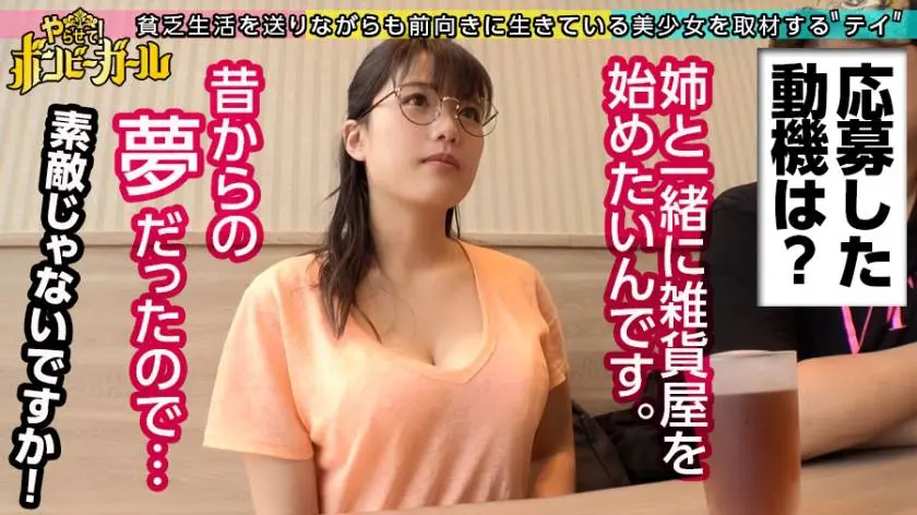 タプンタプンとオッパイを揺らしながら駆け足で現れたのが今回のボンビーガール♪彼女の名前は「さちこ」さん20歳♪秋田出身のボンビーガール♪月収13万円で、家賃はお姉ちゃんと二人暮らしをして節約♪彼女には将来の夢があり、少ない月収ながら毎月貯金を欠かさないがんばり屋さん♪そんな彼女の将来の夢はー?…「姉妹で雑貨屋さんを開業したい!」だ、そうです!目標金額は500万円!その貯金の足しにしたいということでこのAVに応募♪…本当にAVに出演して大丈夫?聞くと秋田に置いてきた彼氏がいるんだとか??「もちろん彼氏には内緒ですw遠距離だけど一緒にがんばろって約束して上京してきたんでw」…うーん、大丈夫??チャットレディをしていた経験もあり、「要求されたらオッパイを見せたり、オナニーさせられたり、それだったらAVも変わんないかな!」…とっても楽天家(笑)幸いエッチが好きだから大丈夫だそうです♪とにかく純粋無垢で健気なさちこさんに、将来の夢のためにひと肌脱いでもらいましょう!!